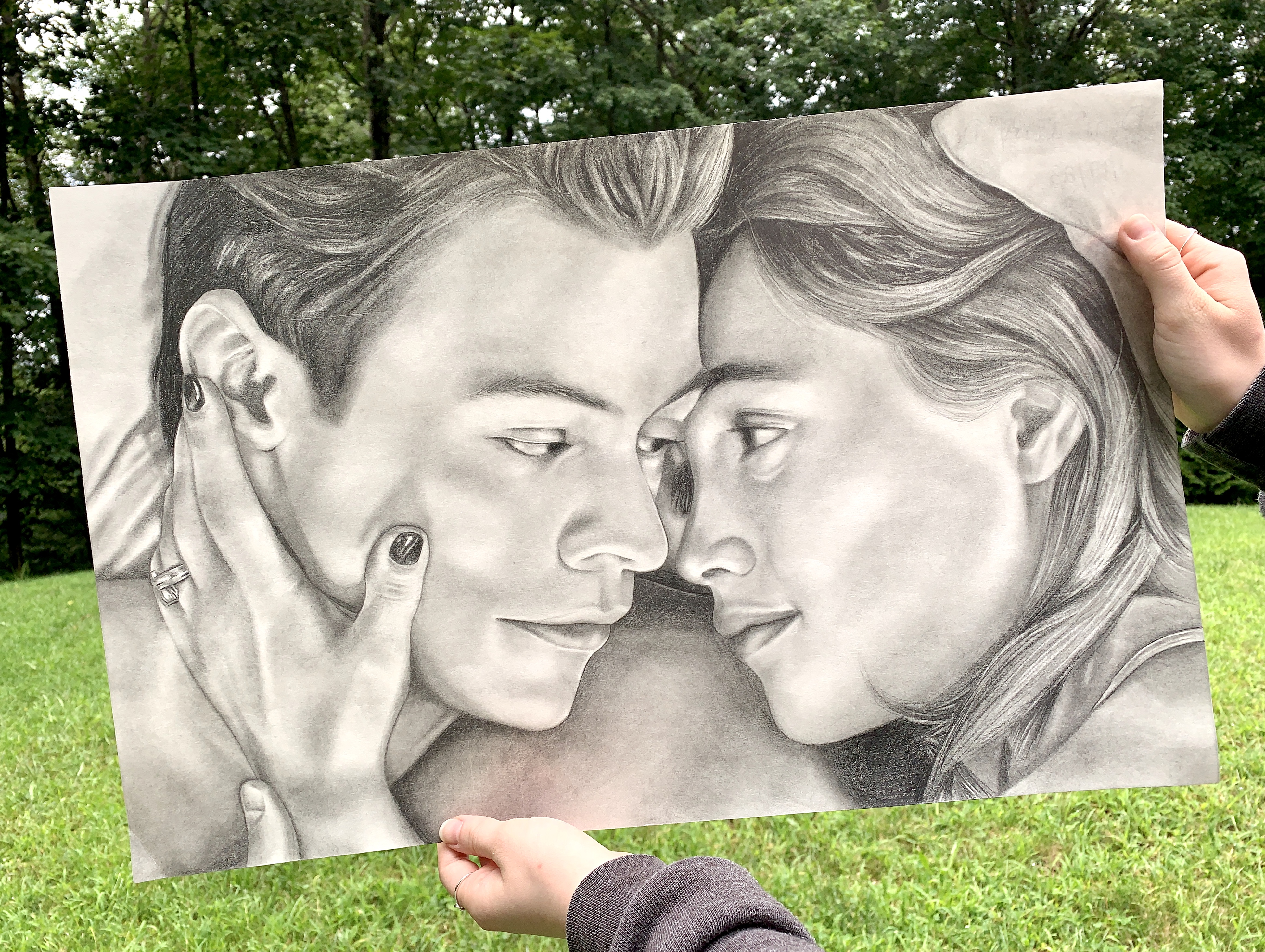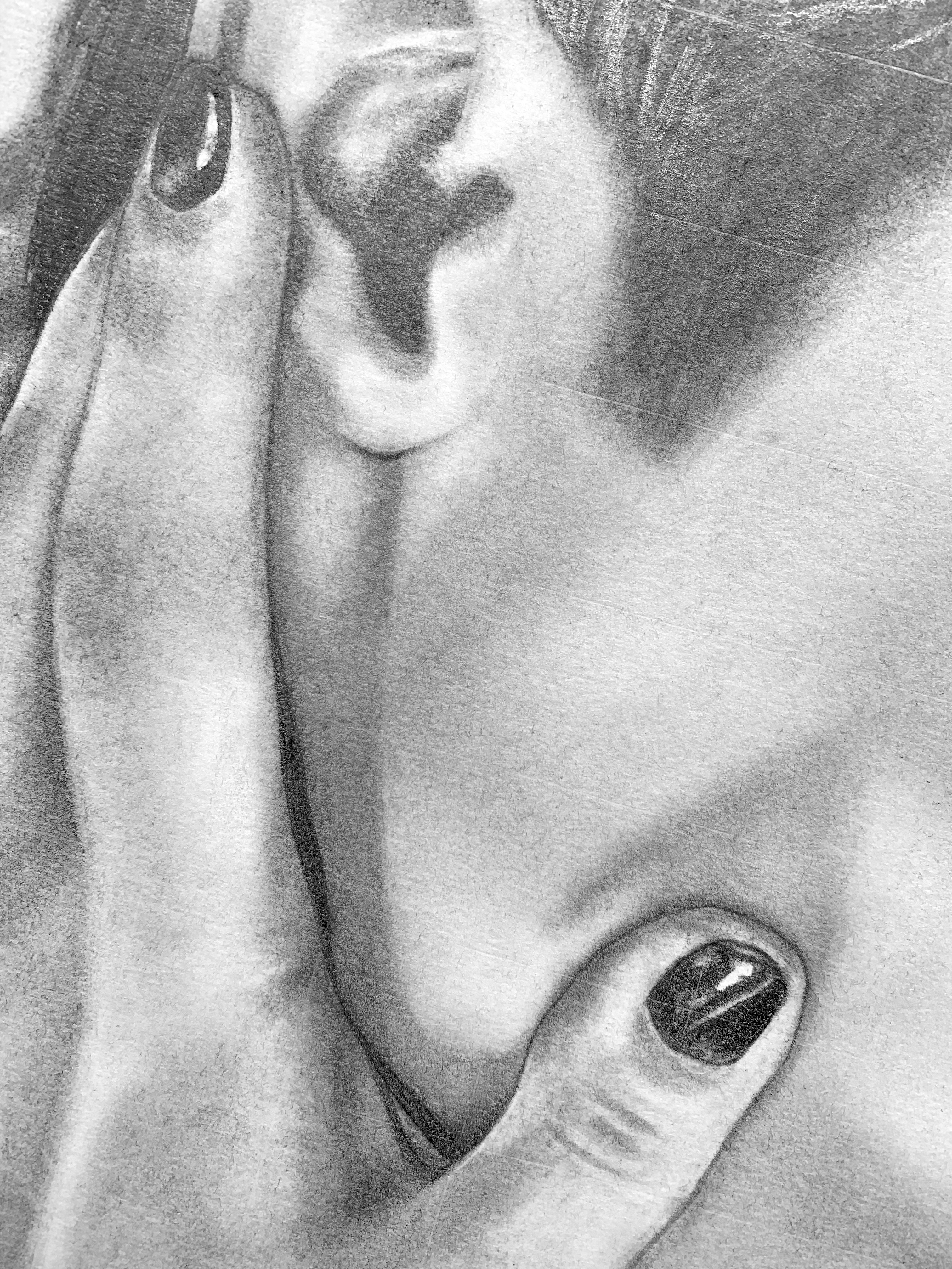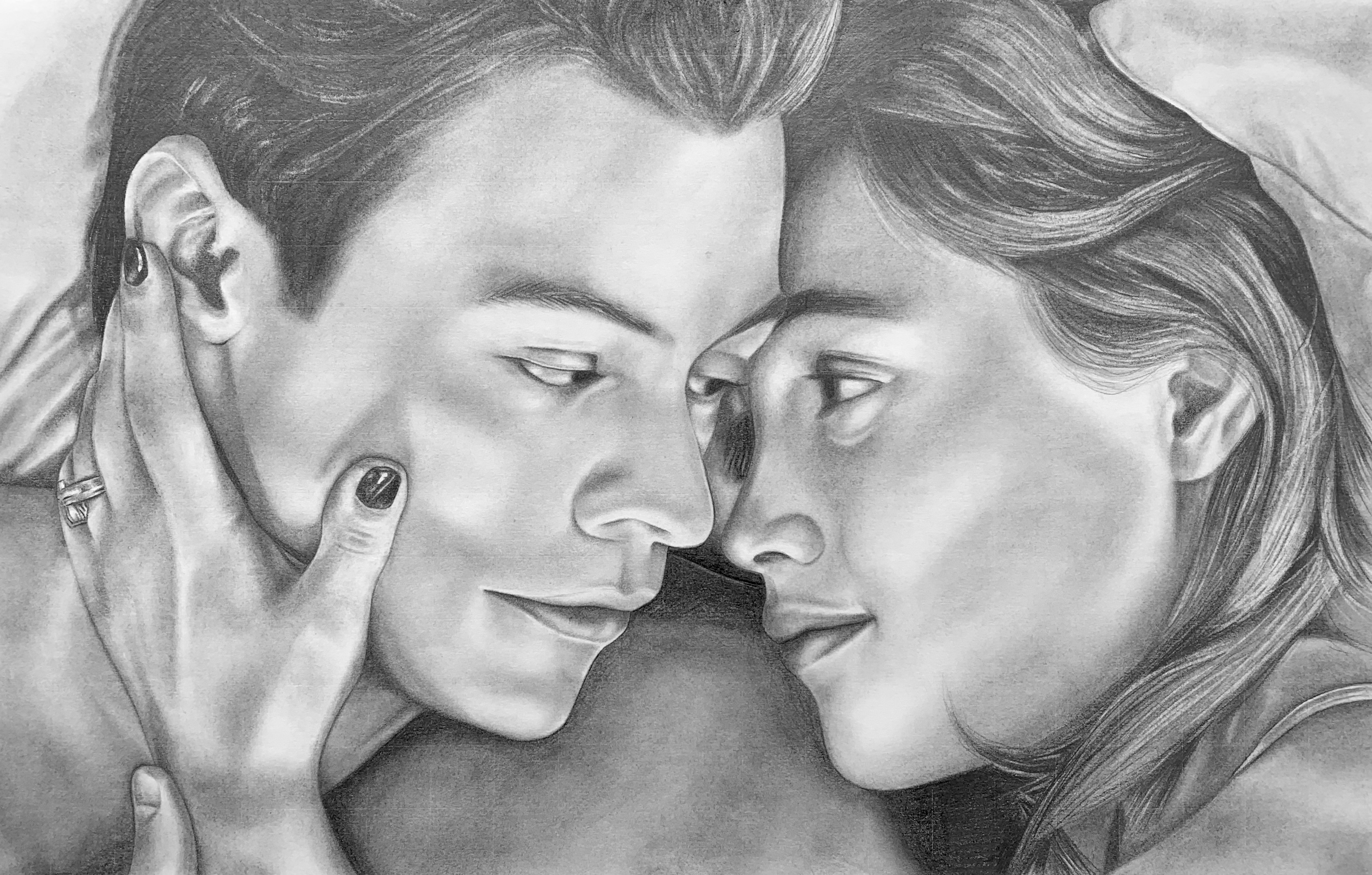 The image itself was a task because it contained two recognizable faces but also was not clear. Some details I added myself which could not be seen through the reference photo. I also tried to work from left to right on the drawing (completing Harry Styles first) so that there would be minimal mess and smudging.