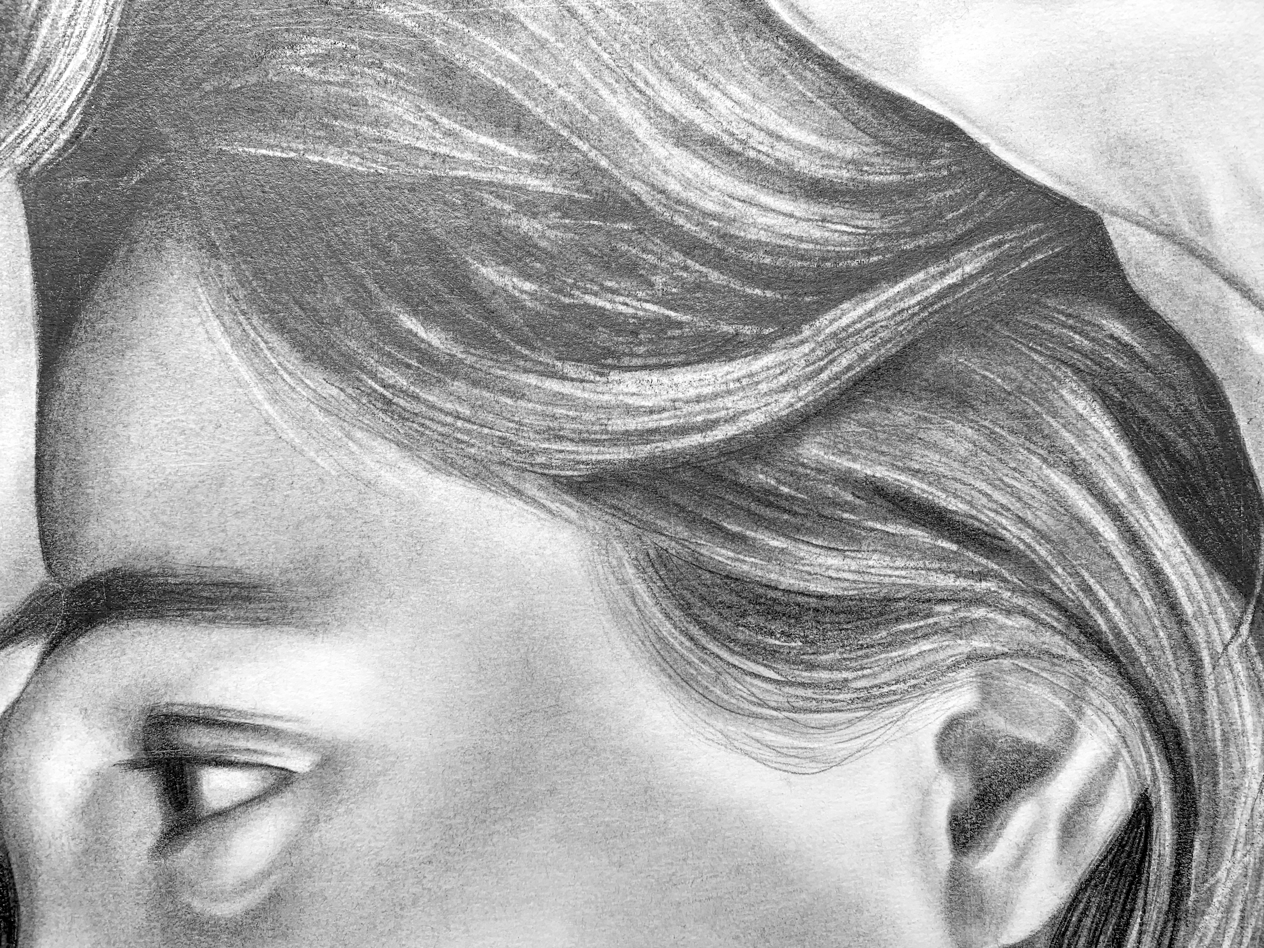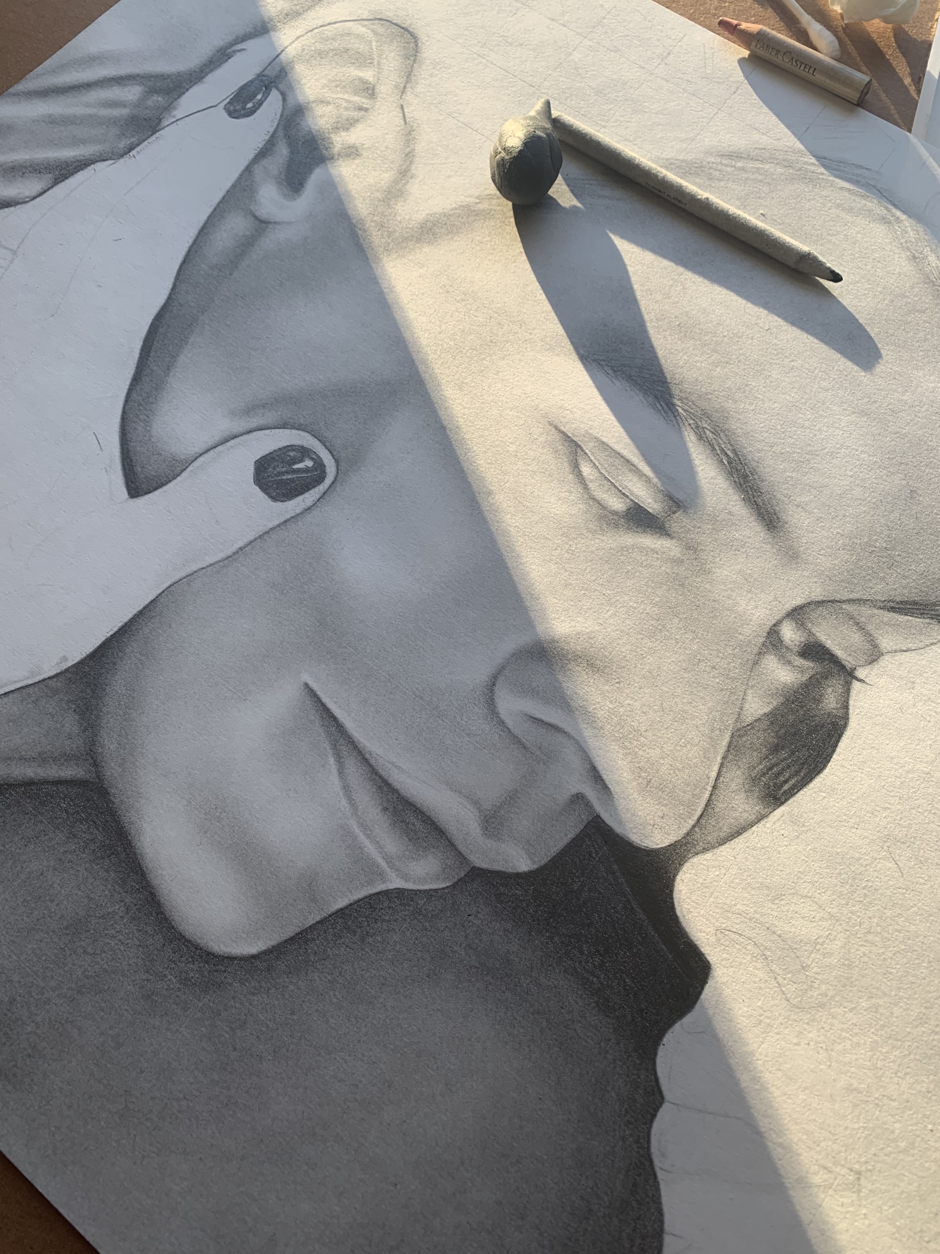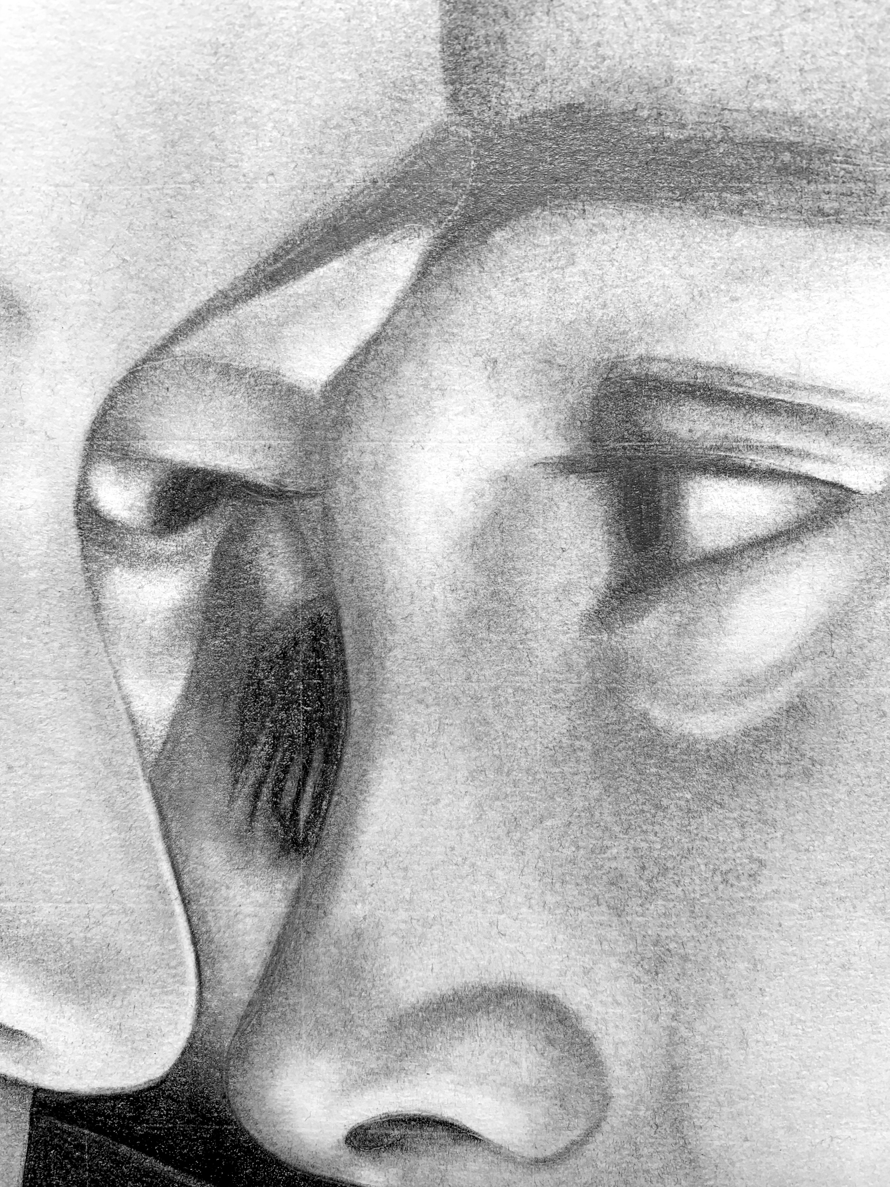 The image itself was a task because it contained two recognizable faces but also was not clear. Some details I added myself which could not be seen through the reference photo. I also tried to work from left to right on the drawing (completing Harry Styles first) so that there would be minimal mess and smudging.