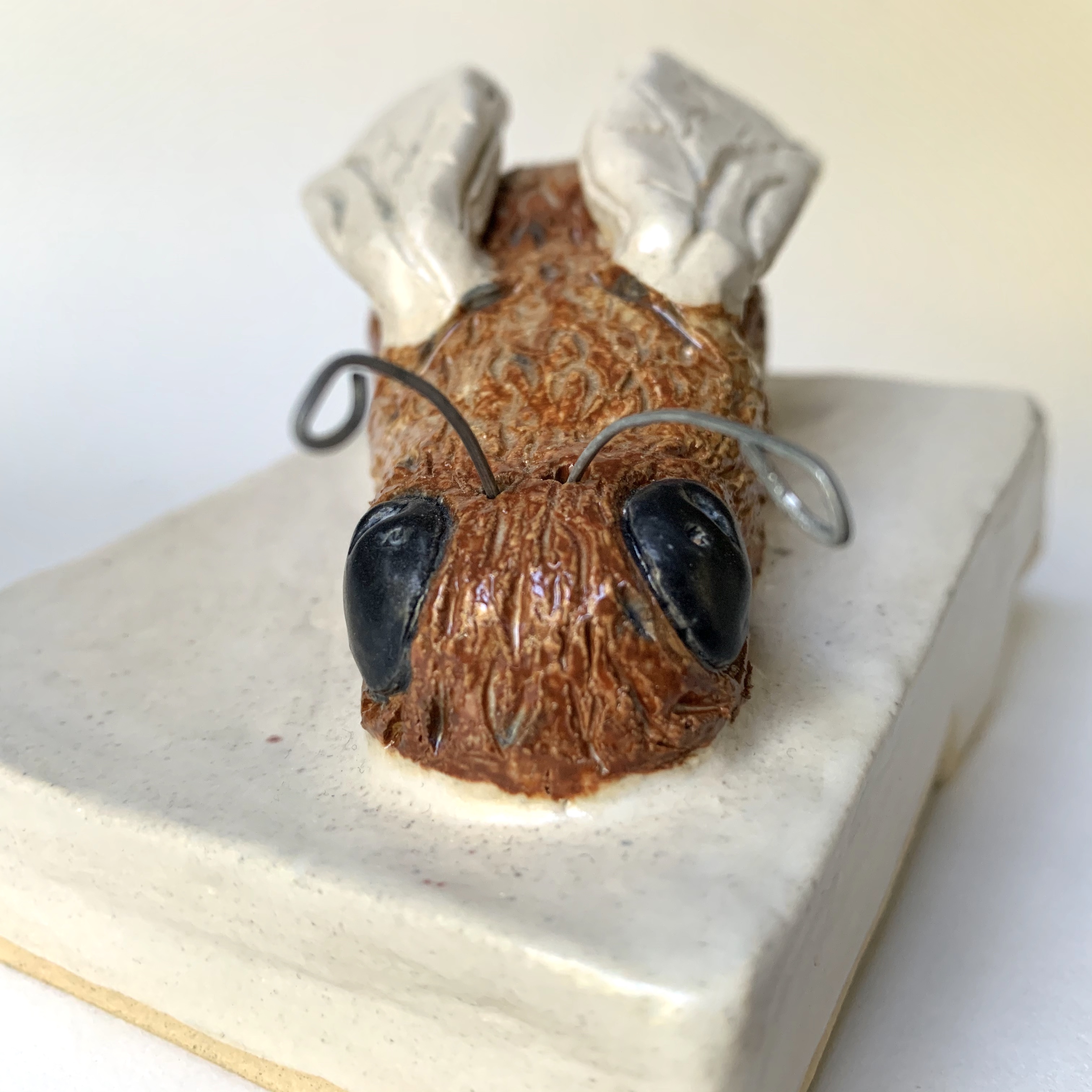 Originally the bee was supposed to be brown, black, and yellow but glanze can be unpredictable. As a result, I went the safe route and just used brown and yellow. Unfortunately, the yellow did not show up as strongly as I had wanted to.