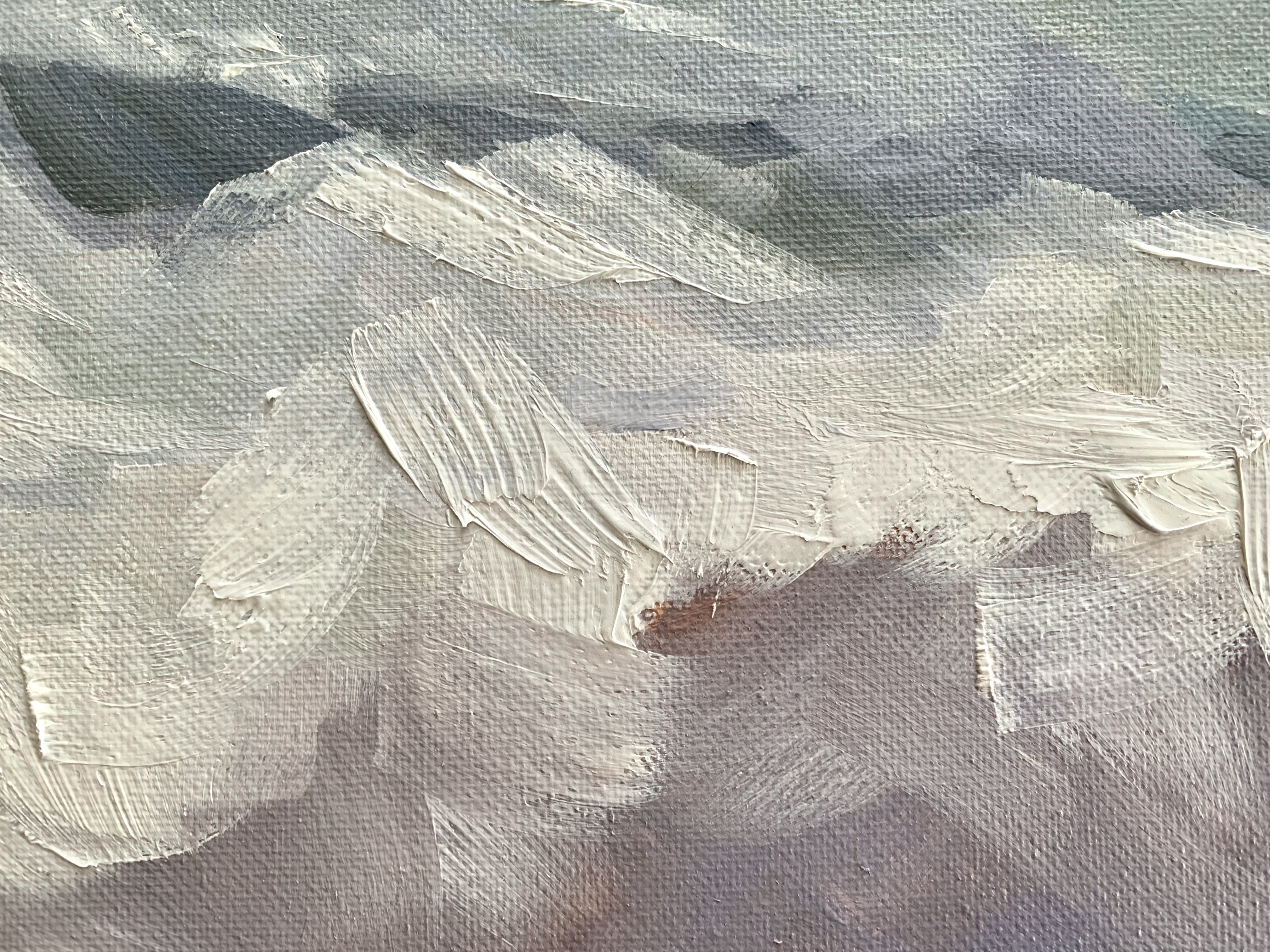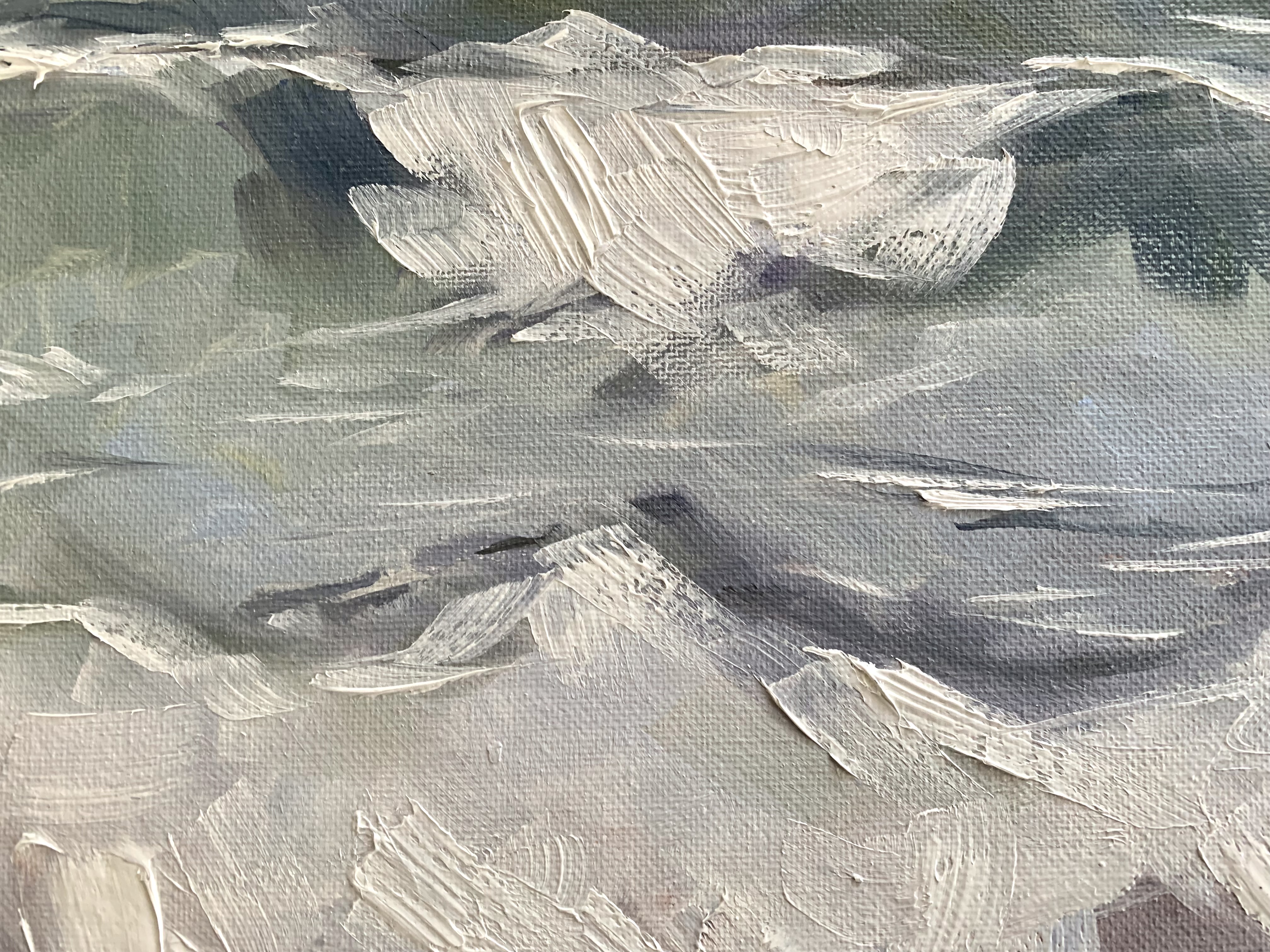 February 2024 – A 24″ x 12″ oil painting of a seascape. The objective was to simplify a complex landscape that consisted of white water and waves which contained movement and a range of blues and greens.