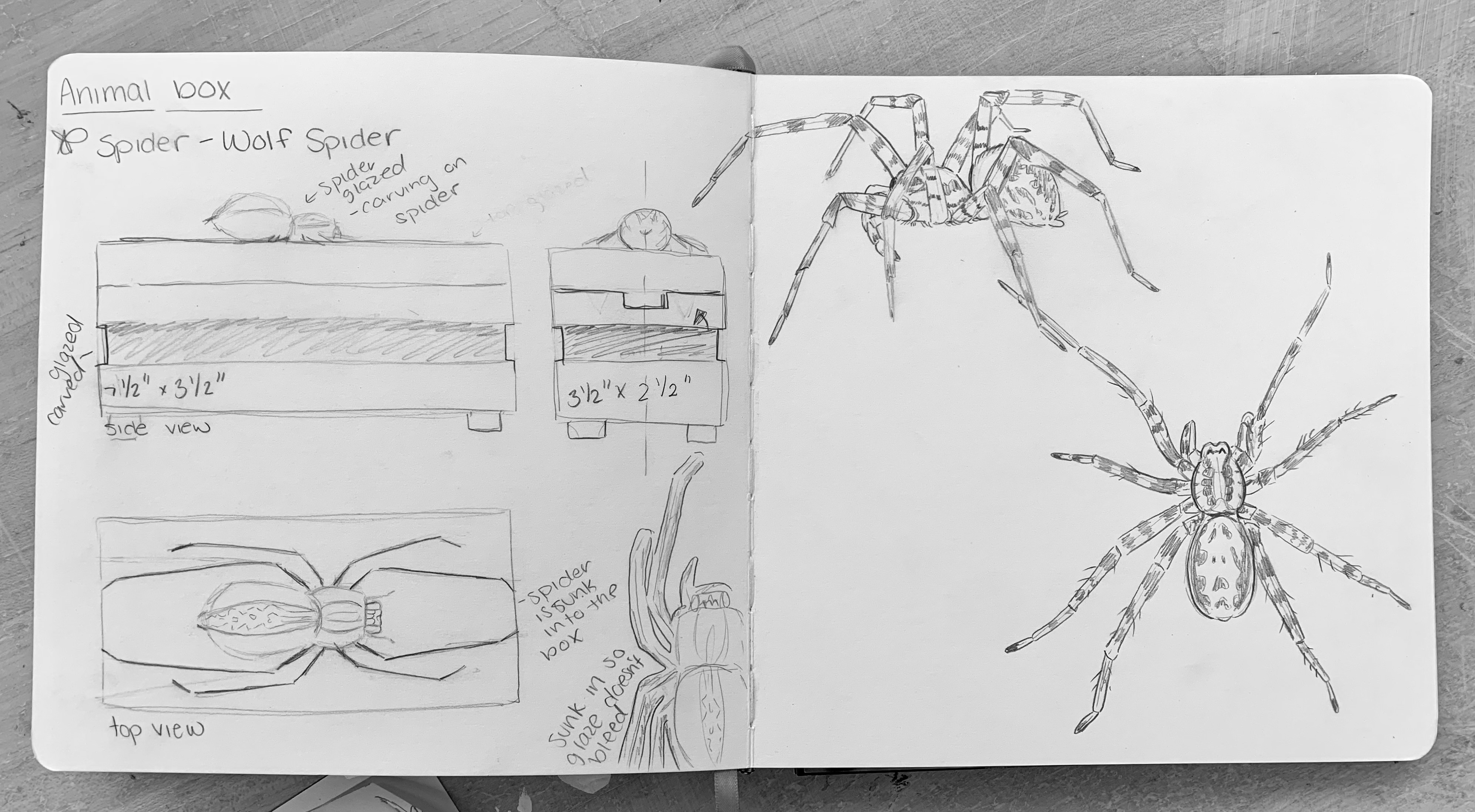 The challenging part of the project was to time everything efficiently. Creating the shape of the box first limited the time I had to work on the spider. The spider legs were fragile and dried out fast resulting in cracks.