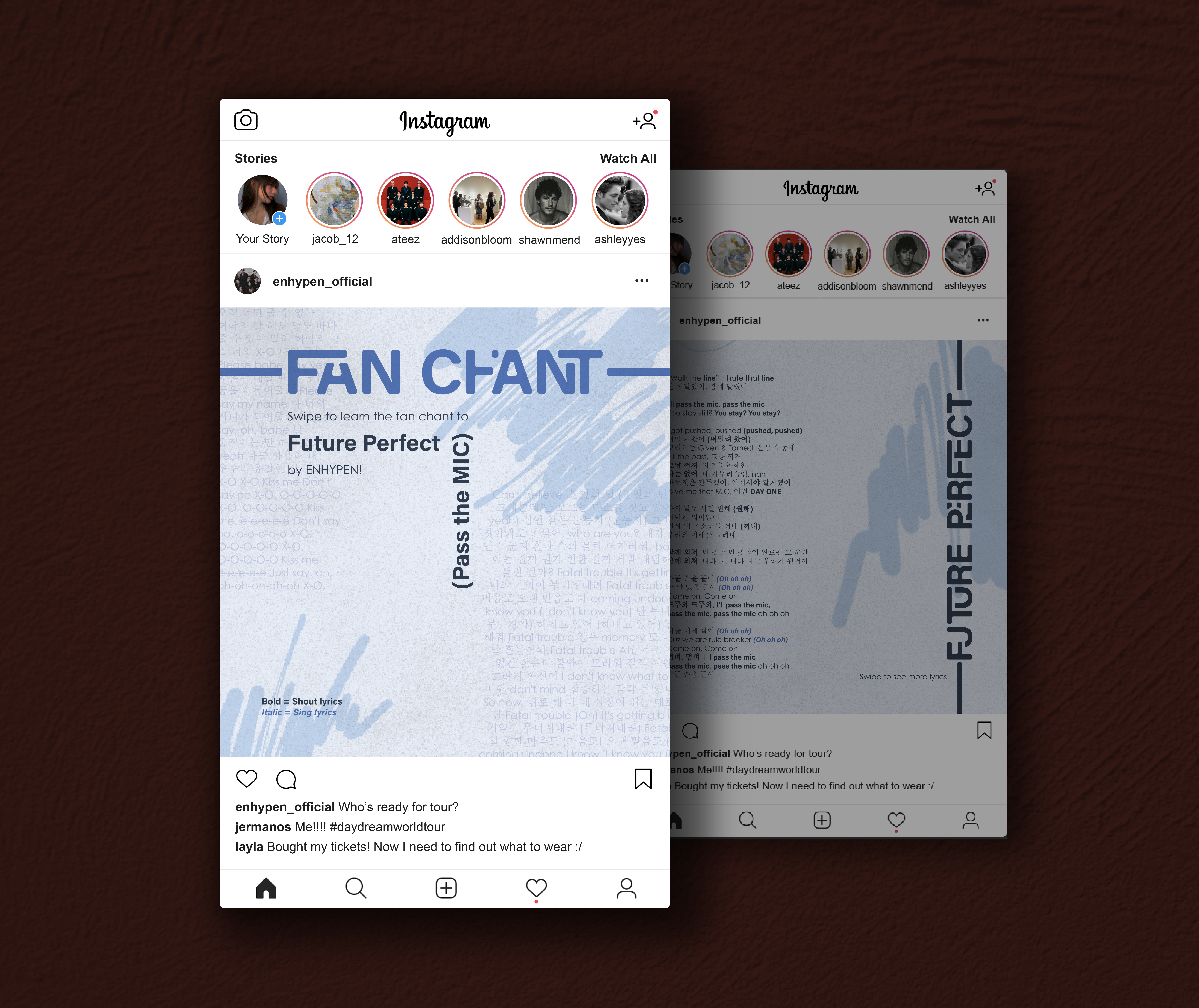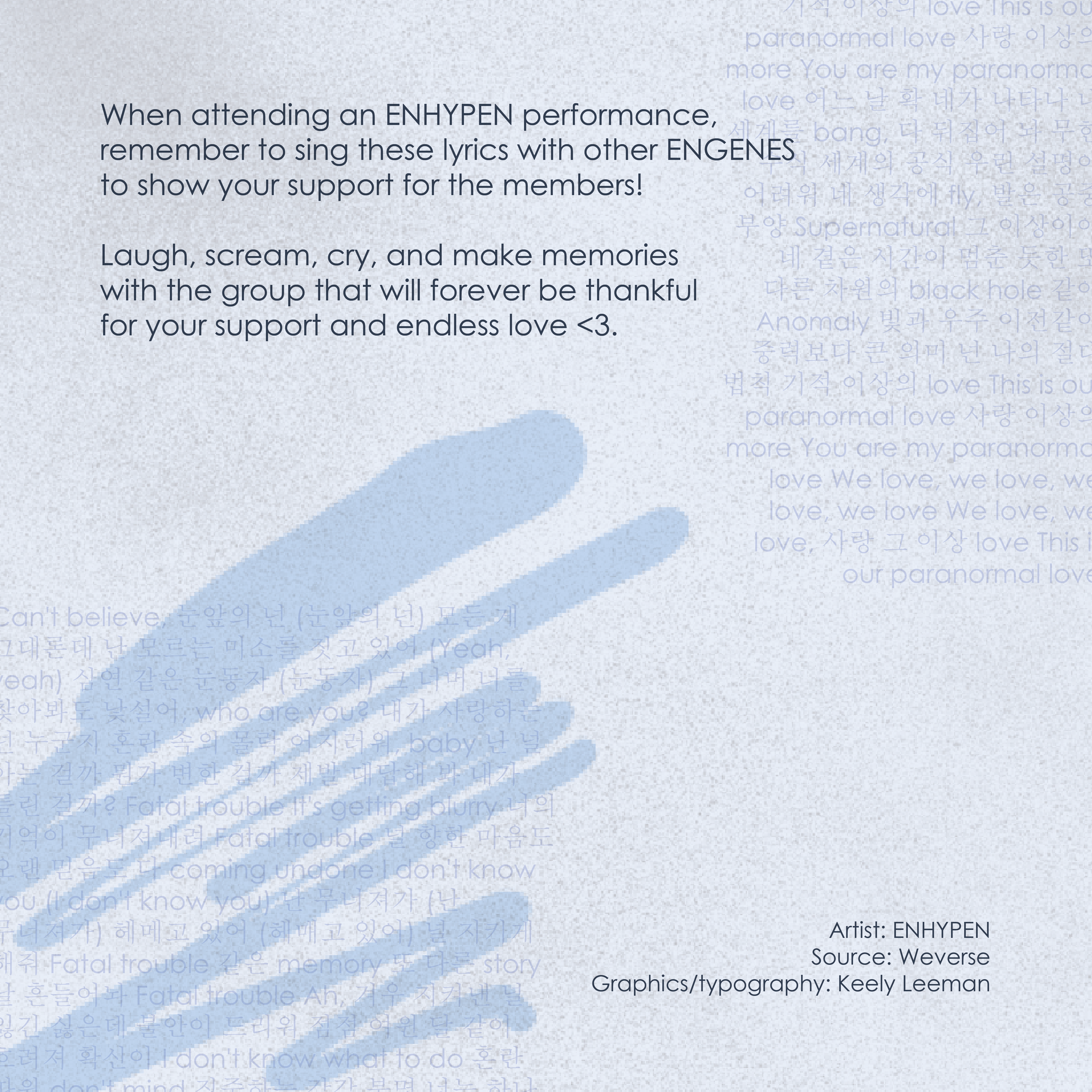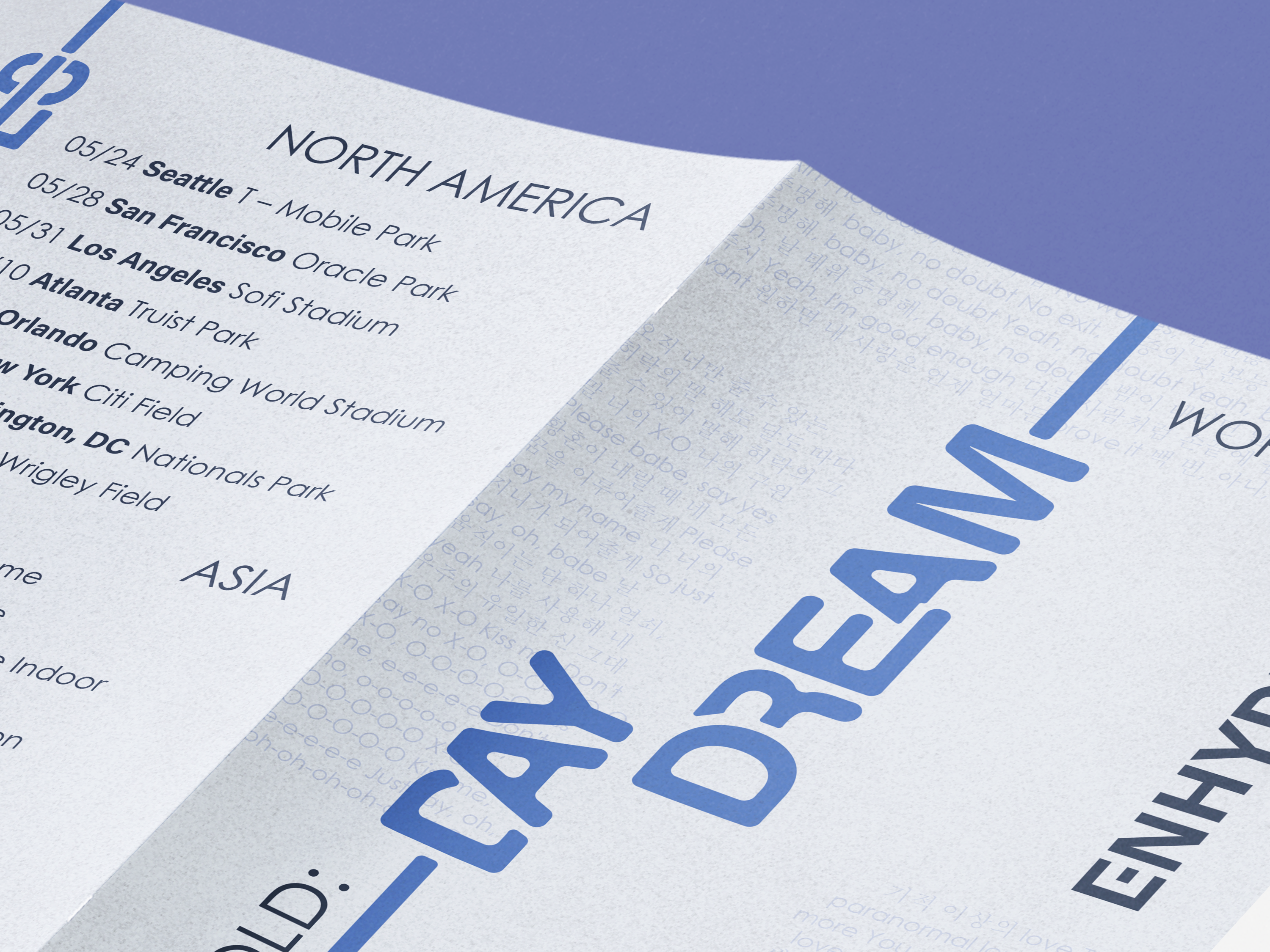 February 2025 – A pamphlet for a fictional tour supporting the South Korean band, ENHYPEN. The pamphlet contains information about the band, each member, the setlist, chants, and tour dates.