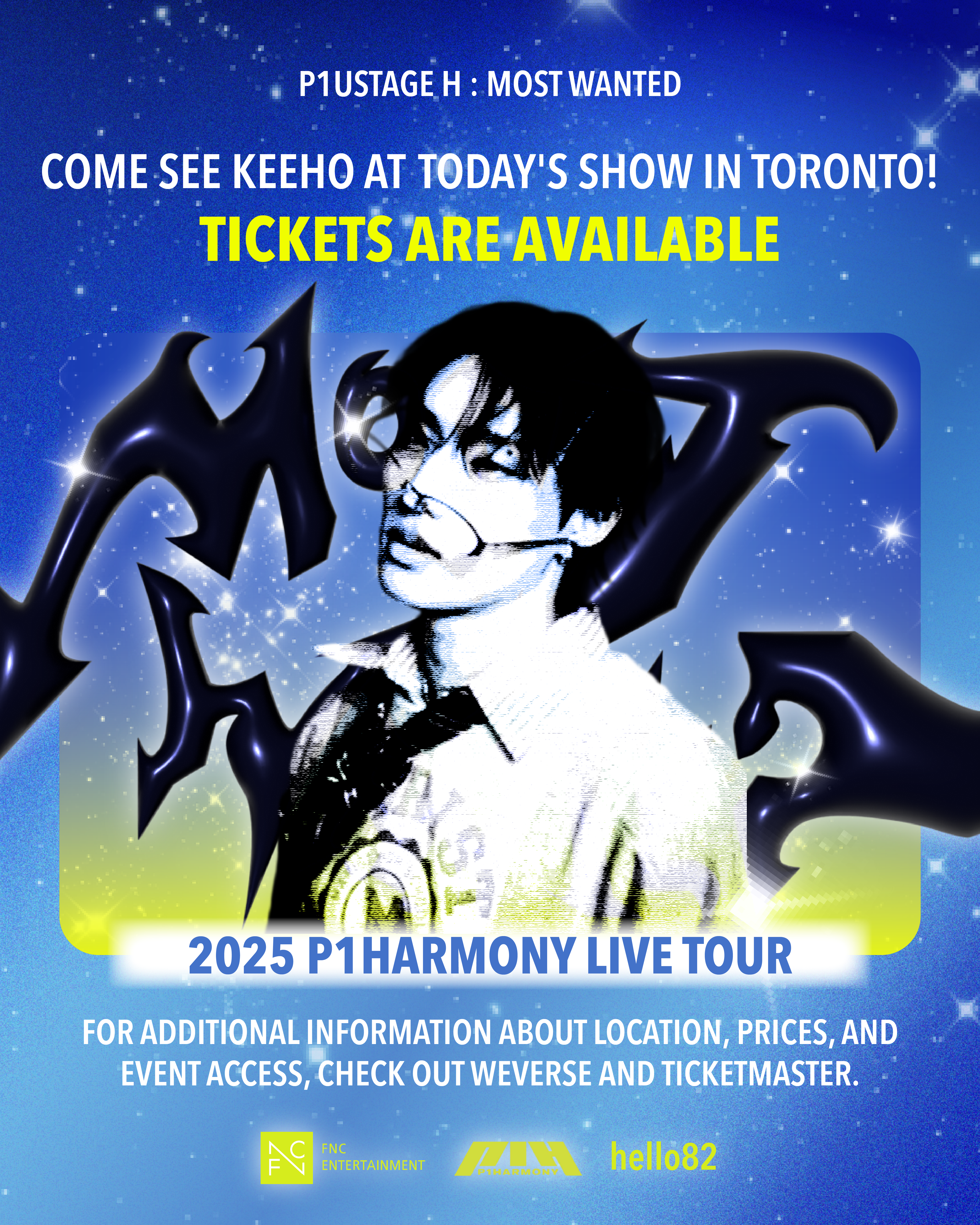 September 2025 – A series of posters promoting the P1Harmony Most Wanted tour (U.S. leg only). Despite the posters having the same style, there is unique typography for each city, and each member featured in the group promotes a specific city.