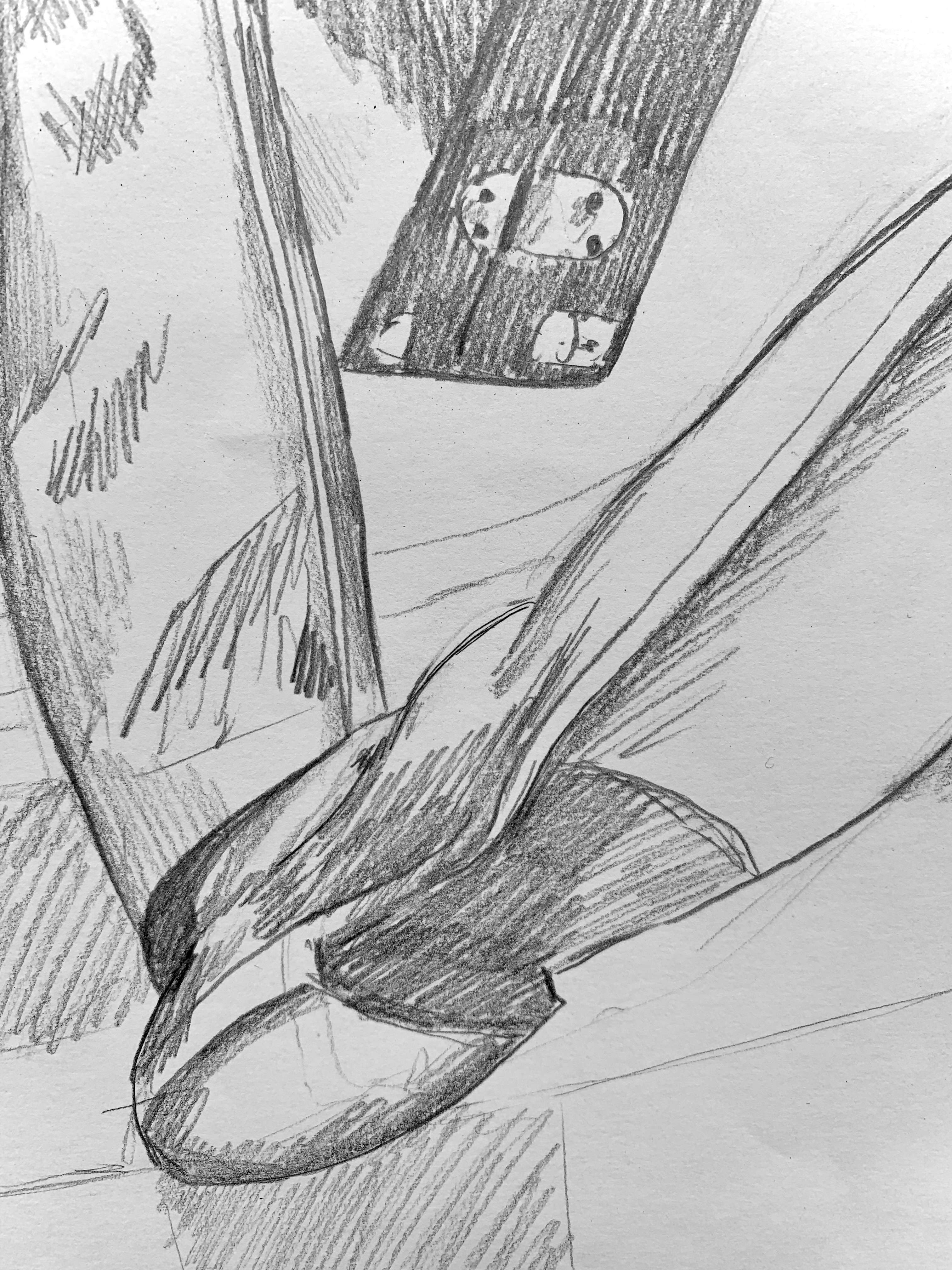 November 14, 2022 – A 12″ x 18″ drawing that displays foreshortening. The objective was to understand human proportions while maintaining a view that elongates and enlarges certain parts of the body.
