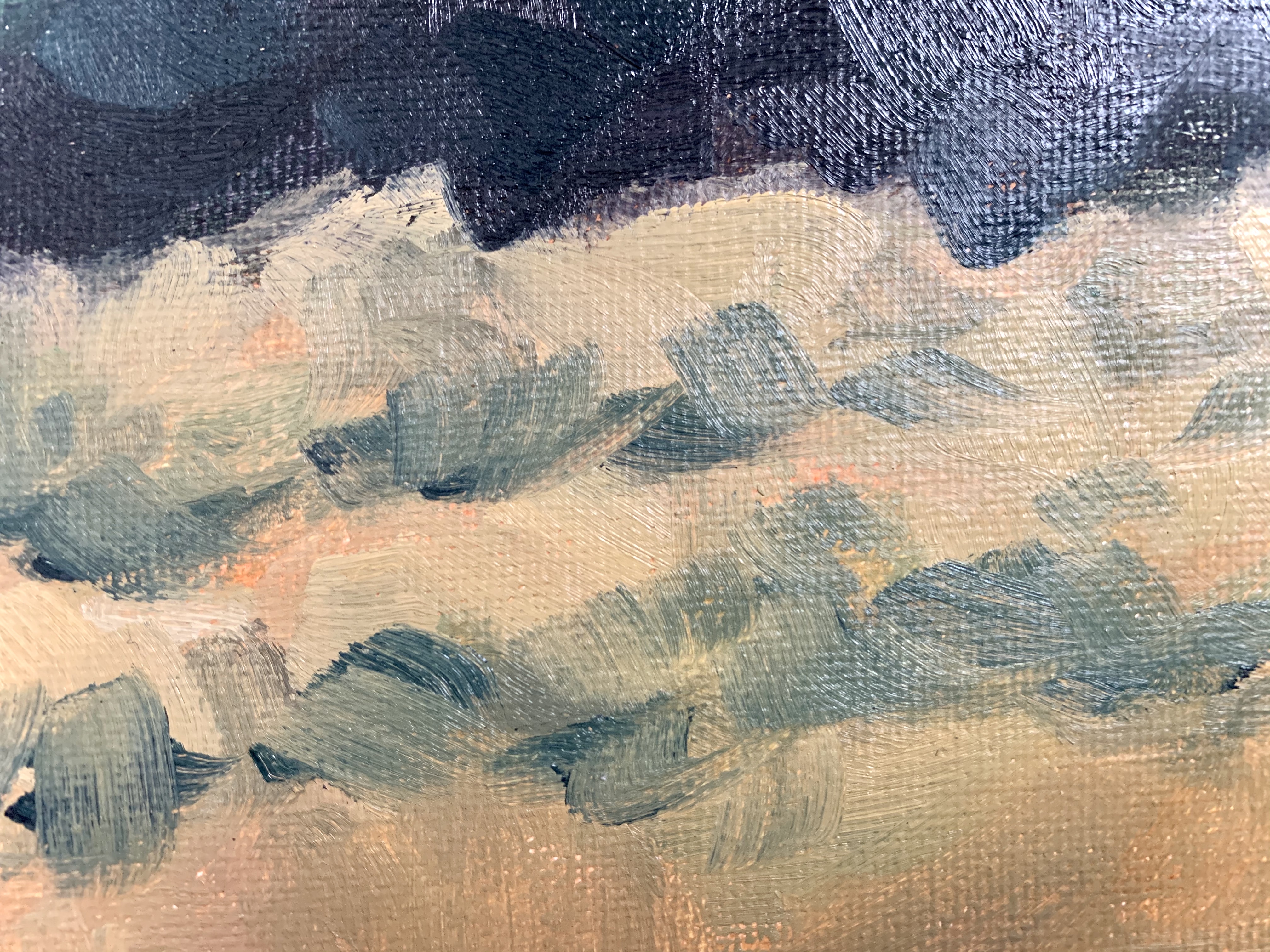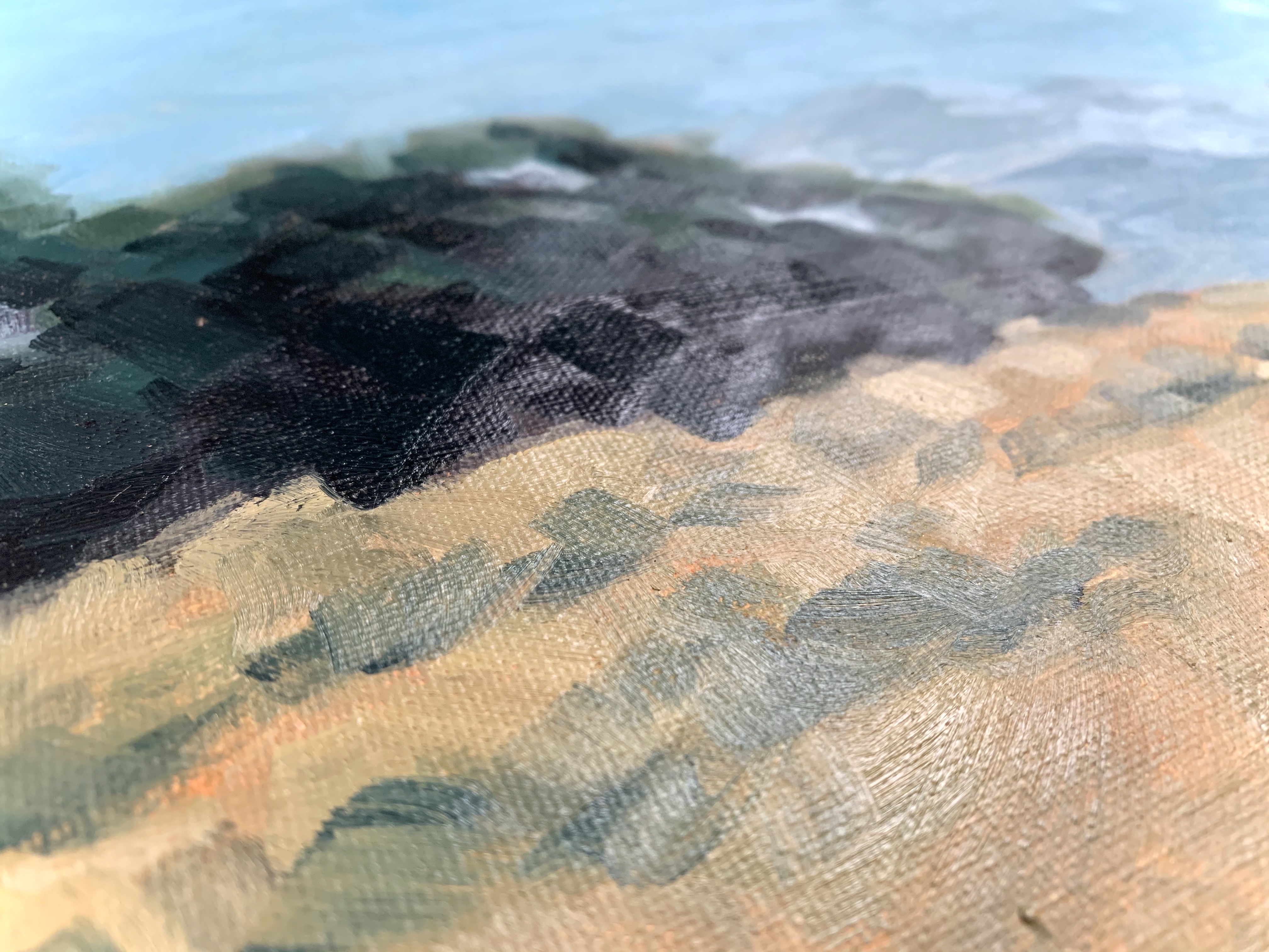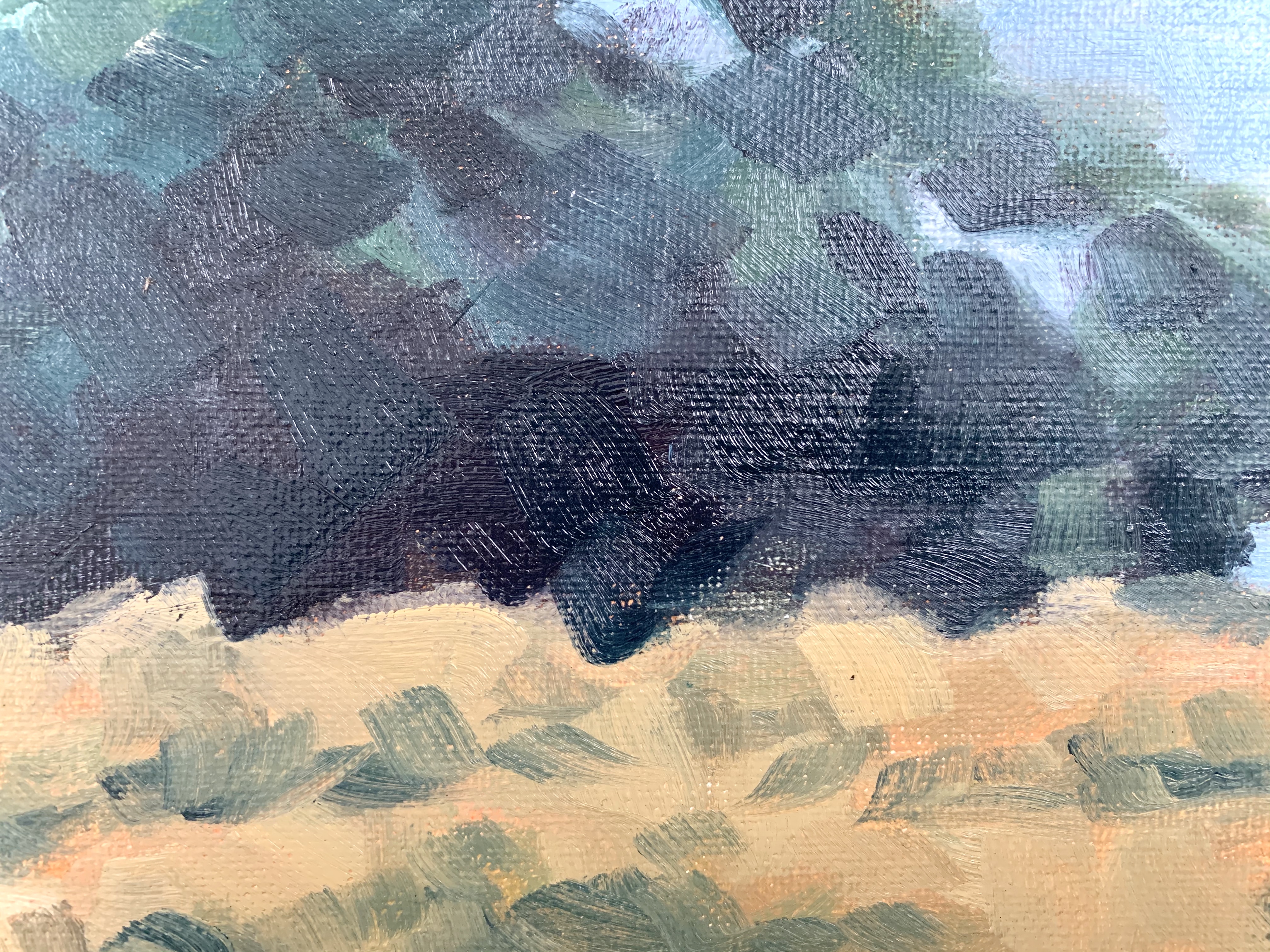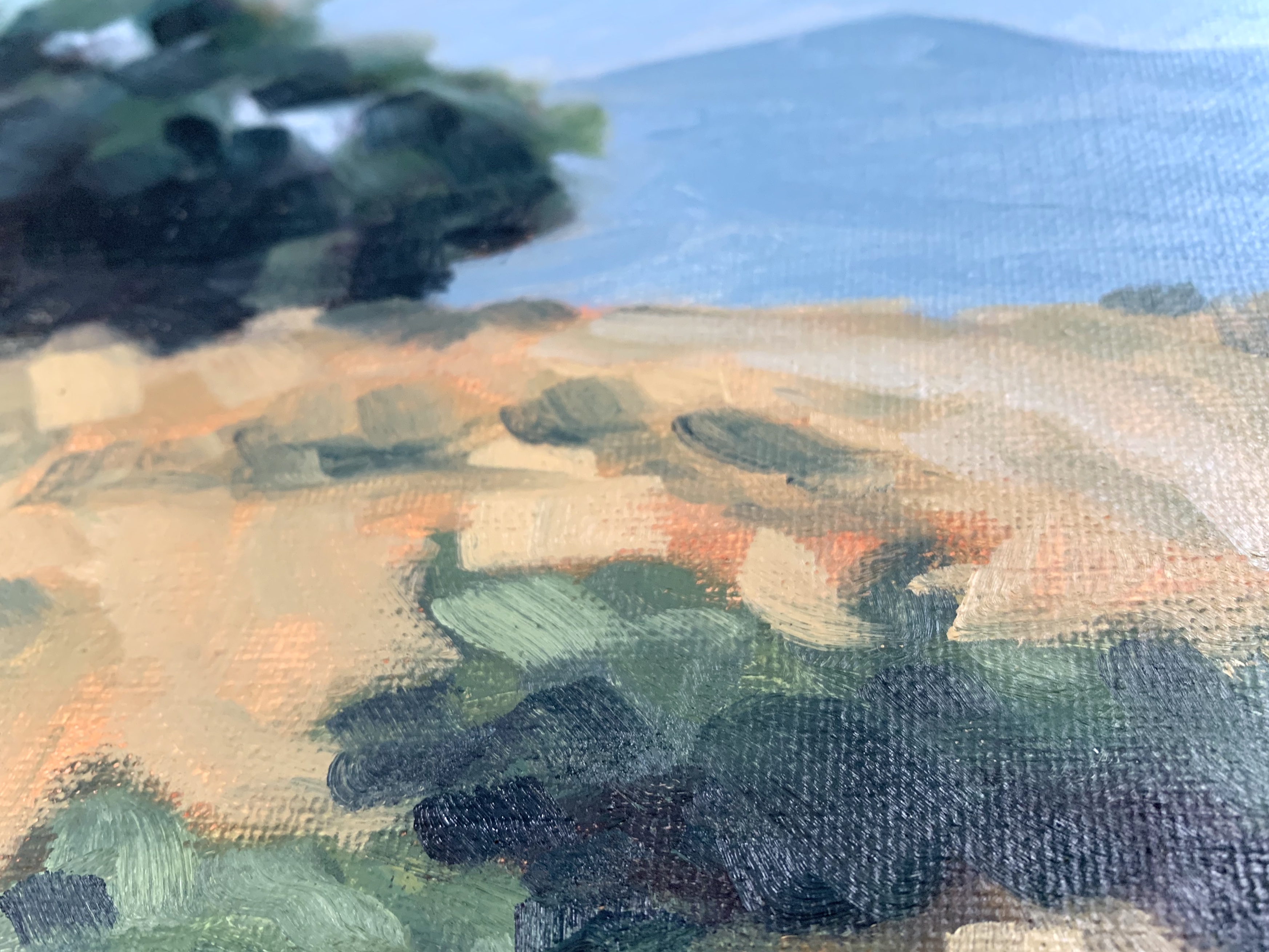 2023 – A 14″ x 11″ oil painting of a field in California. The objective was to learn how to plein air paint before going out on location. This was my first time using oil paints and learning how to mix colors and create an underpainting without any added solutions/mediums.