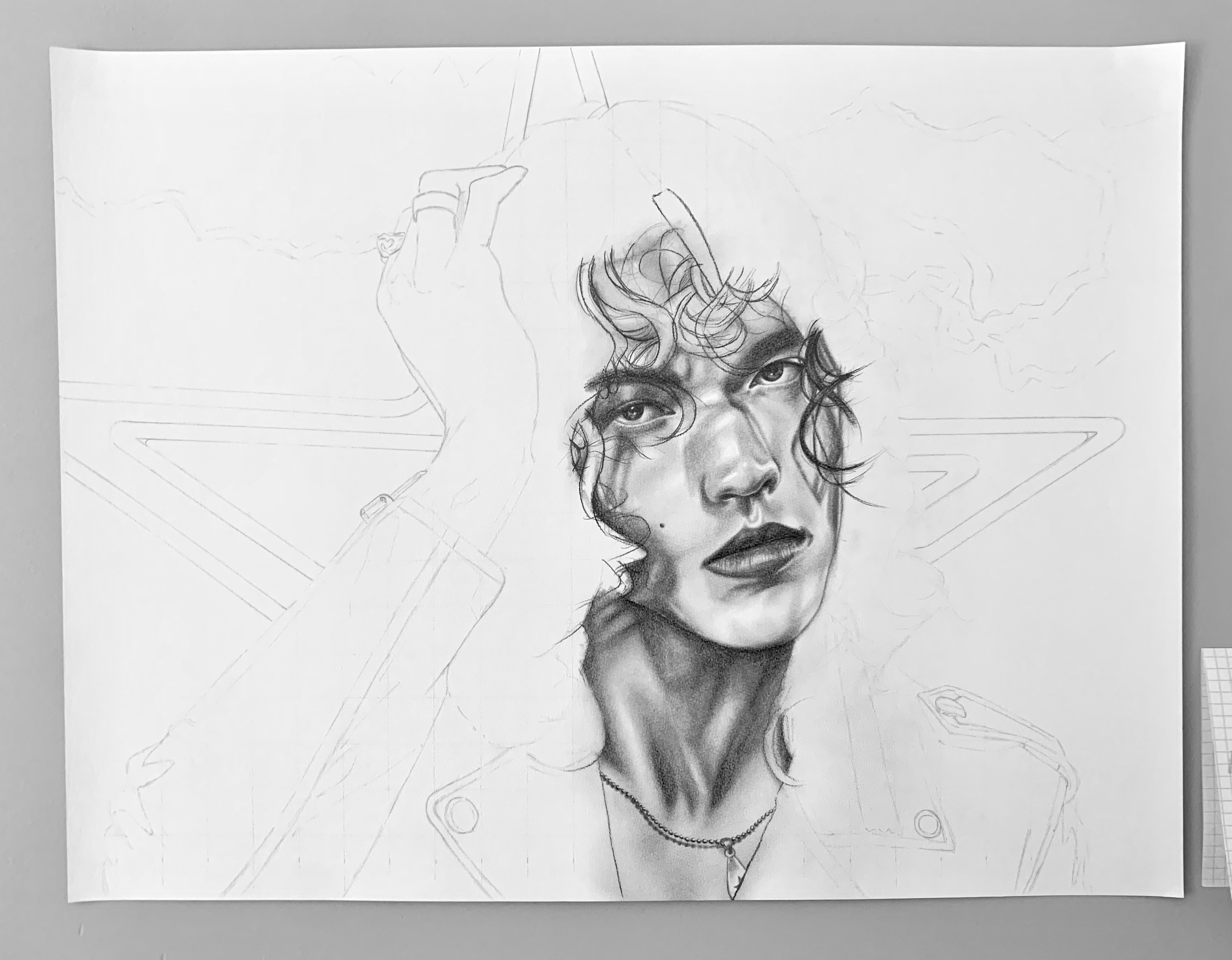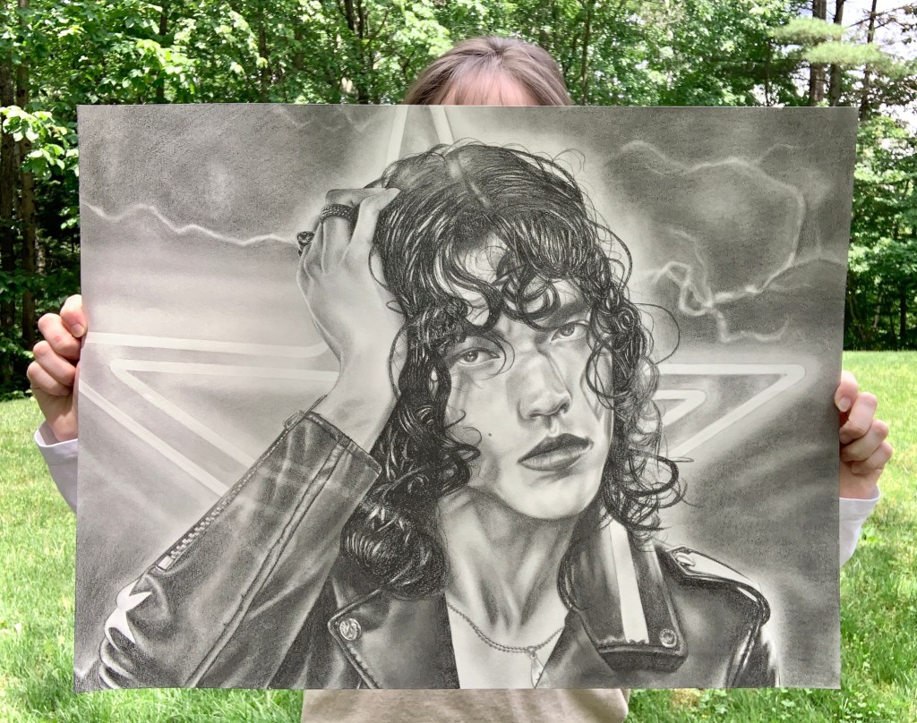 June 6, 2023 – A 24″ x 18″ graphite drawing of Conan Gray. Conan Gray released a single on May 18, 2023, which featured promotional photos that went along with his music video. I enjoyed the song and aesthetics of his video and I became inspired to draw one of the released photos.